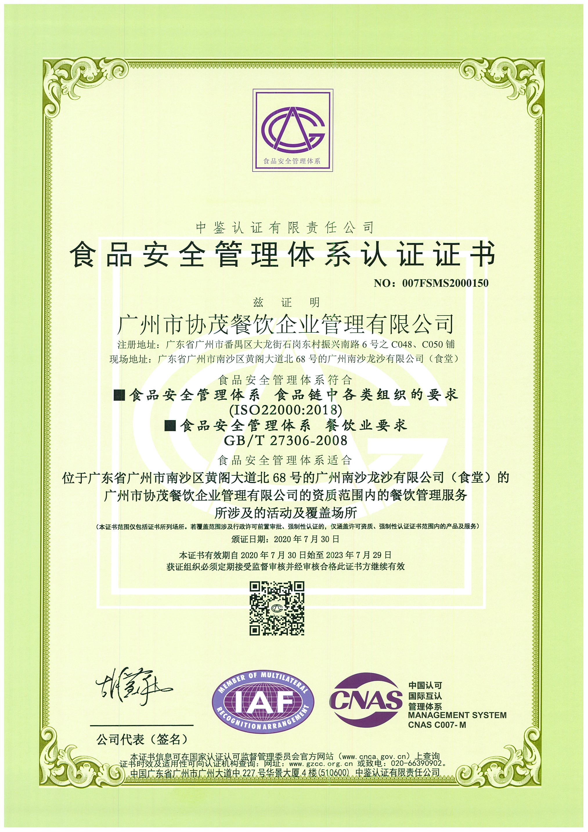 協茂秉承“星級管理,服務至上;立足廣東,服務全國”的經管理念;恪守“誠信、健康、營養”的服務理念;弘揚“品質至上,不斷創新”的企業精神,形成了獨有的“優質、快捷、客戶滿意”的服務標準。科學的管理、人性的服務、嚴密的體制鑄就了協茂口碑。